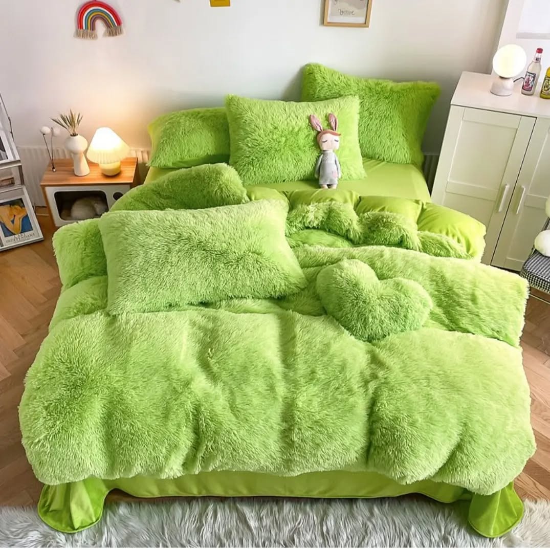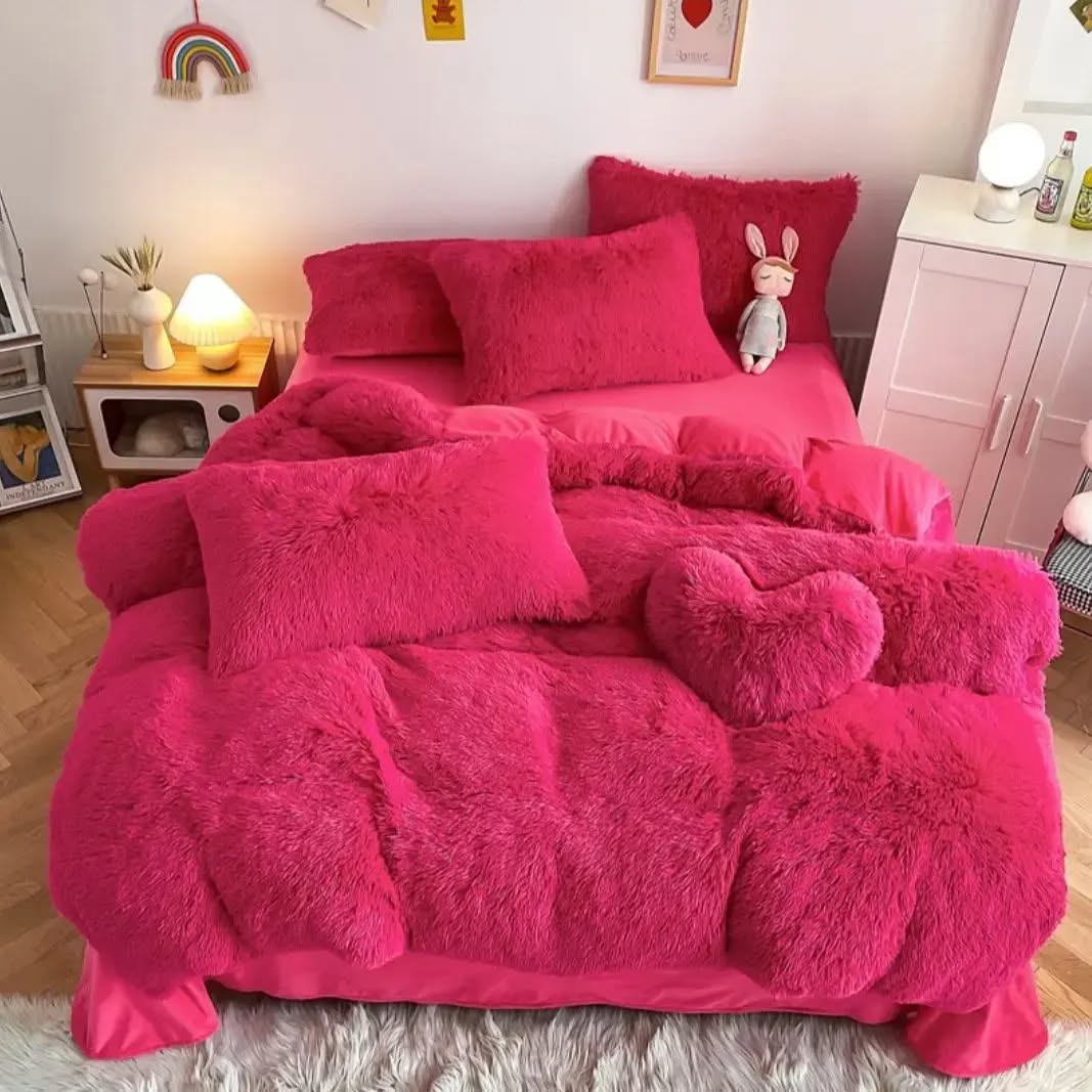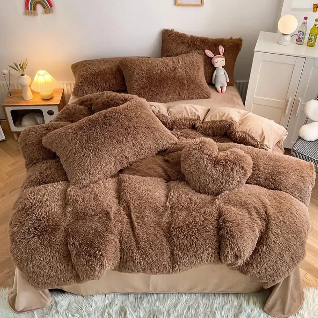 روتختی خزدار پشمالویی زمستانی مدل لوکس، انتخابی عالی برای کسانی است که به ترکیب زیبایی و راحتی اهمیت میدهند. جنس این ست از خز نرم و لطیف مخملی است که لمس آن حس گرما و لطافت را منتقل میکند. طراحی برجسته و دوخت دقیق باعث شده ظاهر محصول بسیار شیک و لاکچری باشد و به هر اتاق خوابی جلوهای خاص بدهد.