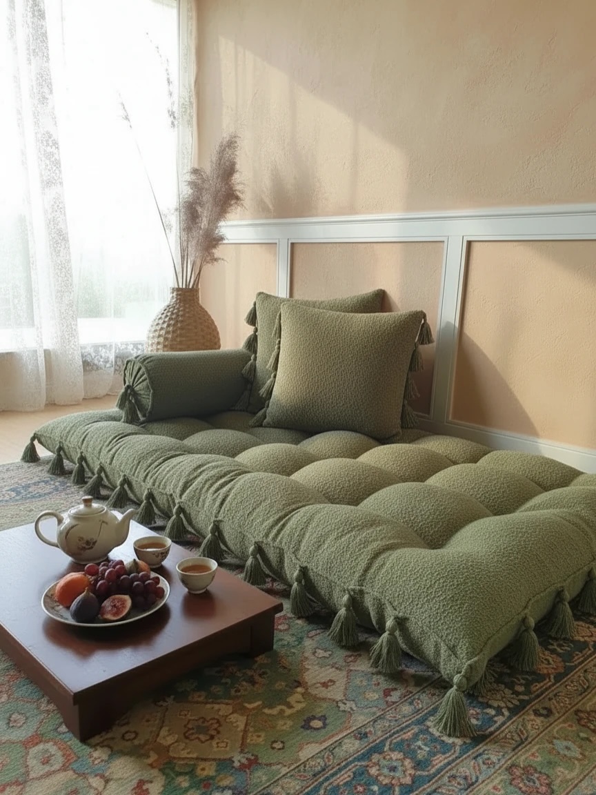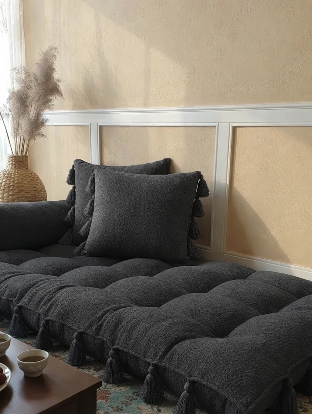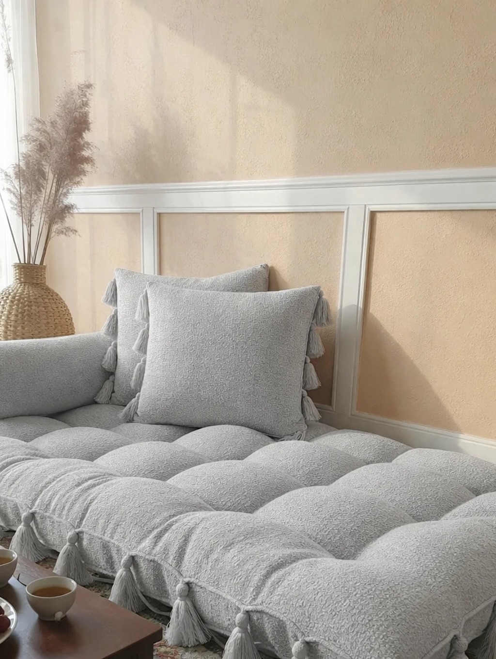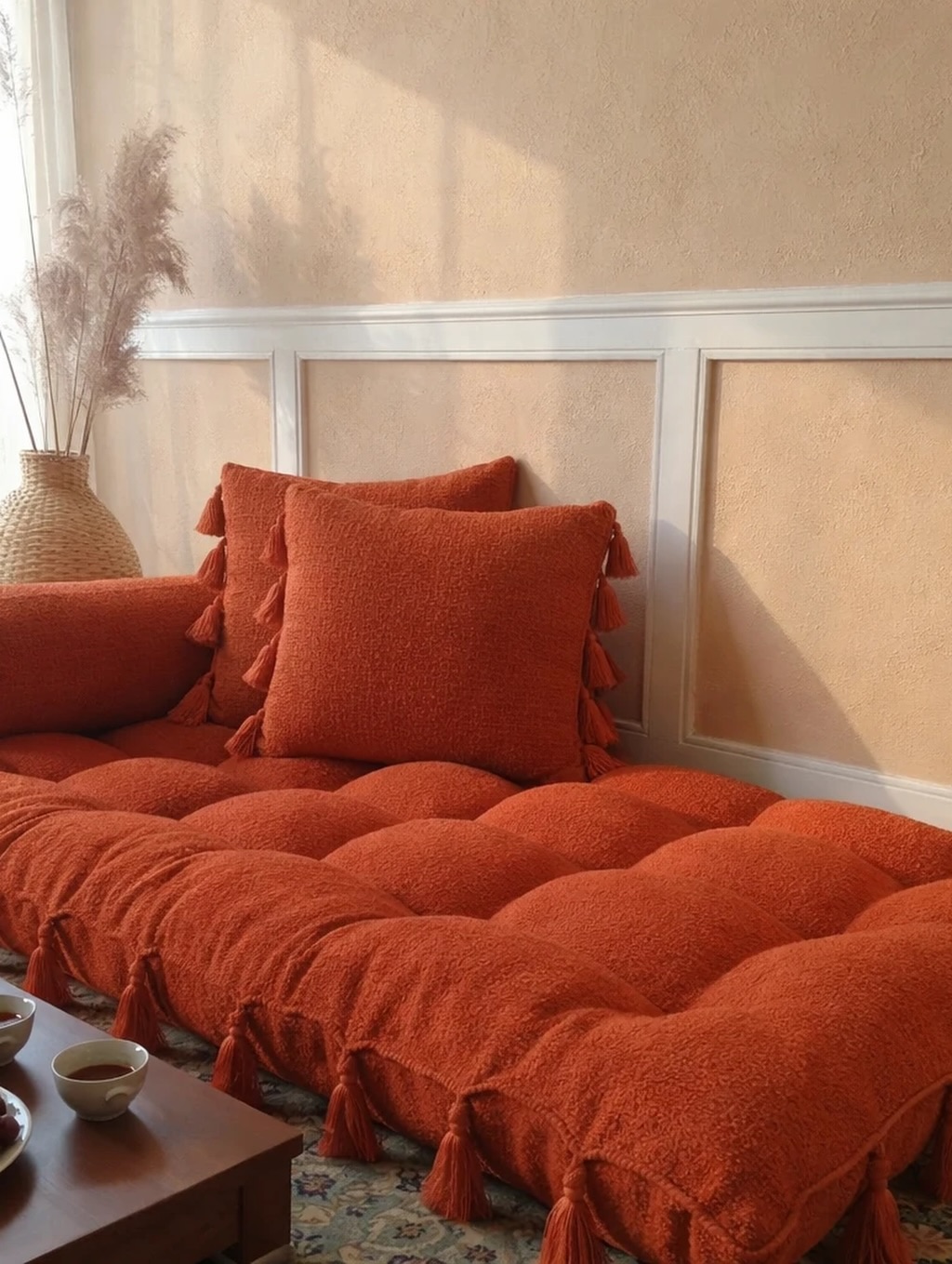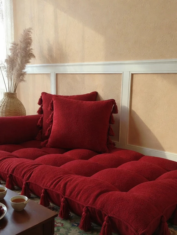 الیاف داخلی حجیم و استاندارد باعث حفظ فرم تشکچه در طول زمان میشود و حتی پس از استفاده مداوم، حالت اولیه خود را از دست نمیدهد. منگولههای تزئینی اطراف کار بهصورت محکم و تمیز دوخته شدهاند و جلوهای خاص و سنتی به فضا میبخشند.