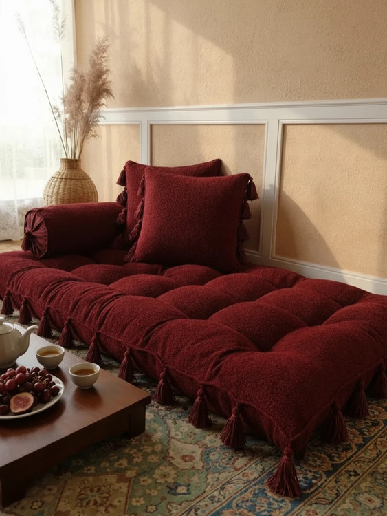 تشکچه زمینی منگوله دار با پارچه ببعی نرم و لطیف
