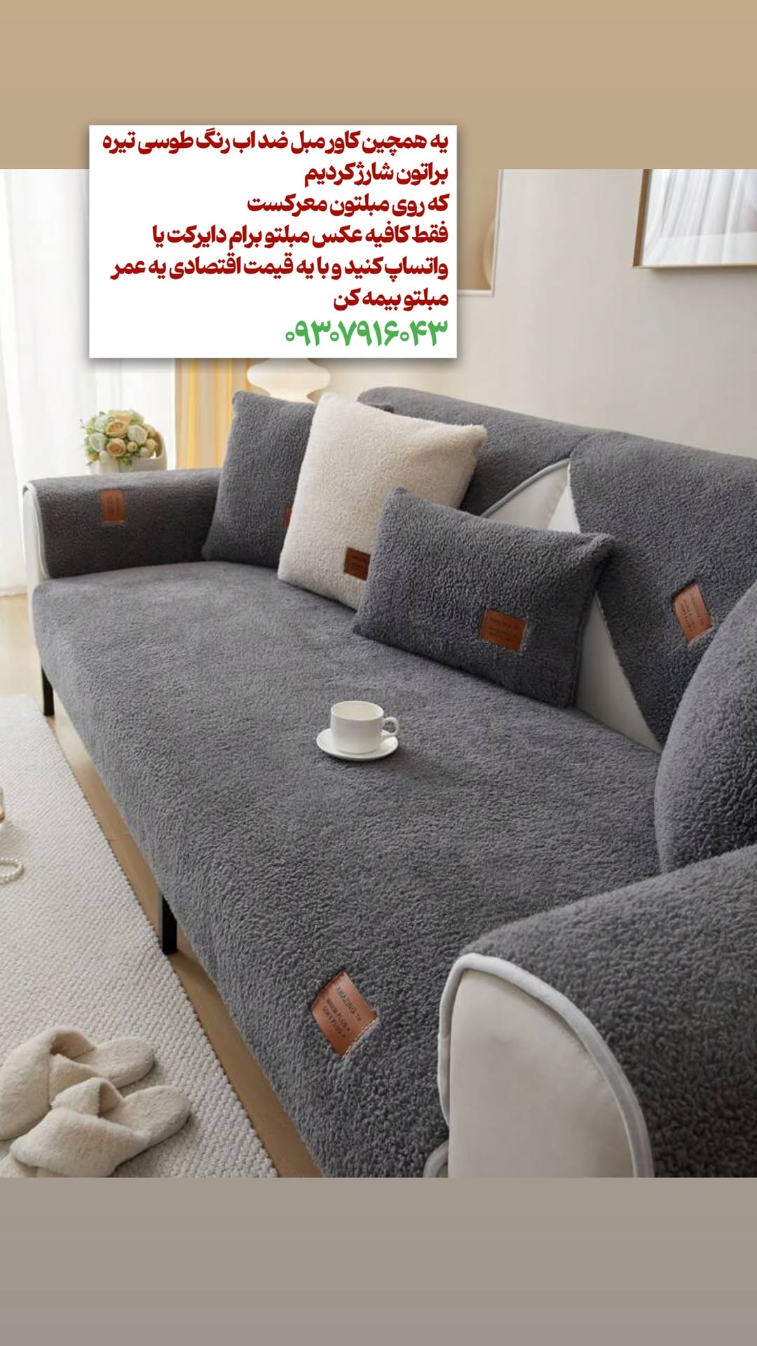 کاور مبل دکوراتیو ۳لایه و ضد اب،استپ دار اصلا روی مبل جابه جا نمیشه،قابل شستشو توی ماشین لباسشویی
